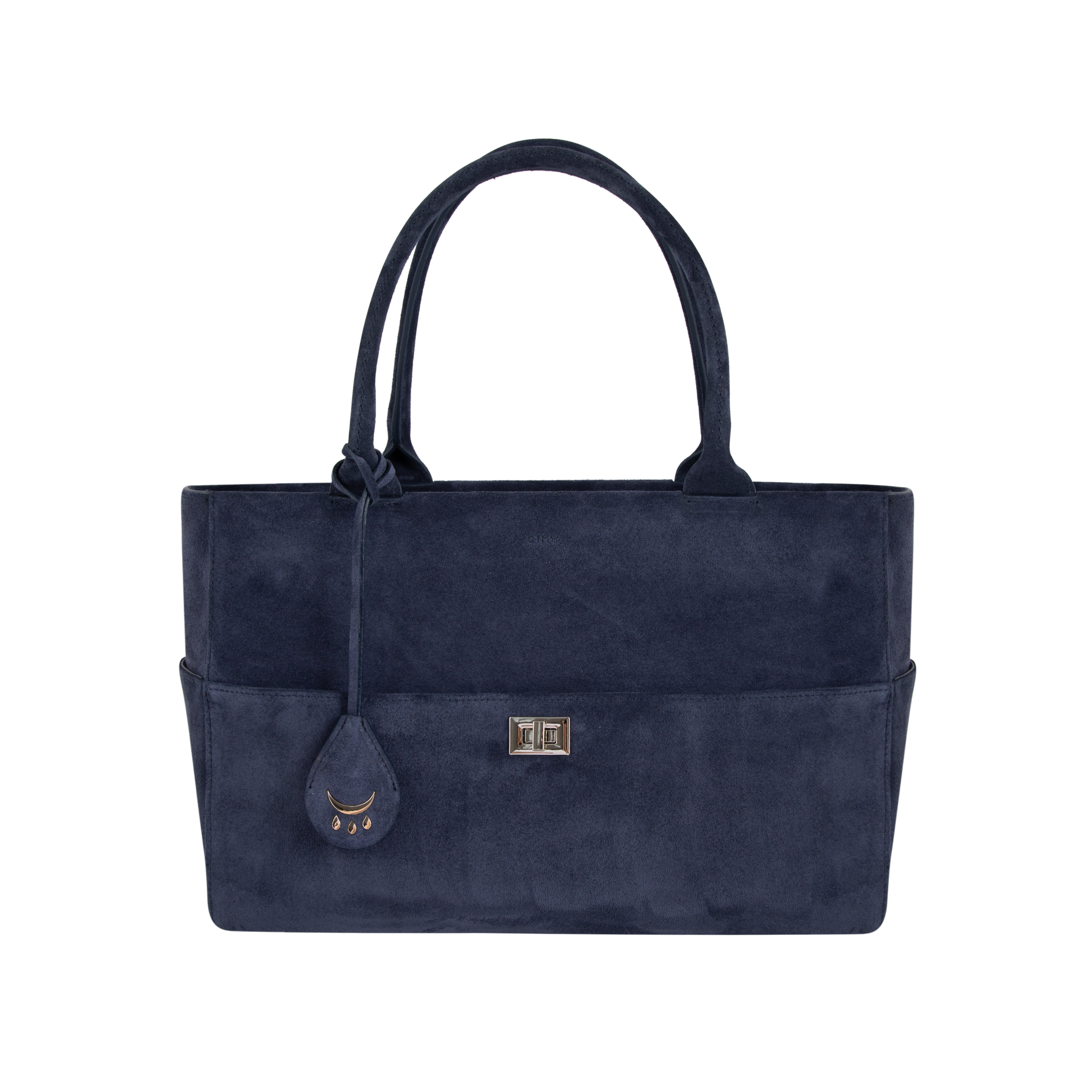 A drop-shaped metal charm inspired by QIMU’s logo and an integrated keychain attachment elevate the functional details with a refined finish.
